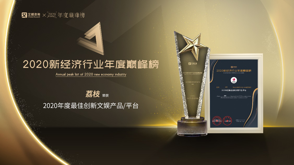 1月19日,由iiMedia Research(艾媒咨詢)主辦的“2020新經濟行業年度巔峰榜頒獎典禮”在線上舉行,隆重揭曉了“2020新經濟行業年度巔峰榜”獲獎企業名單。音頻平臺荔枝榮獲“2020年度最佳創新文娛產品/平臺”。